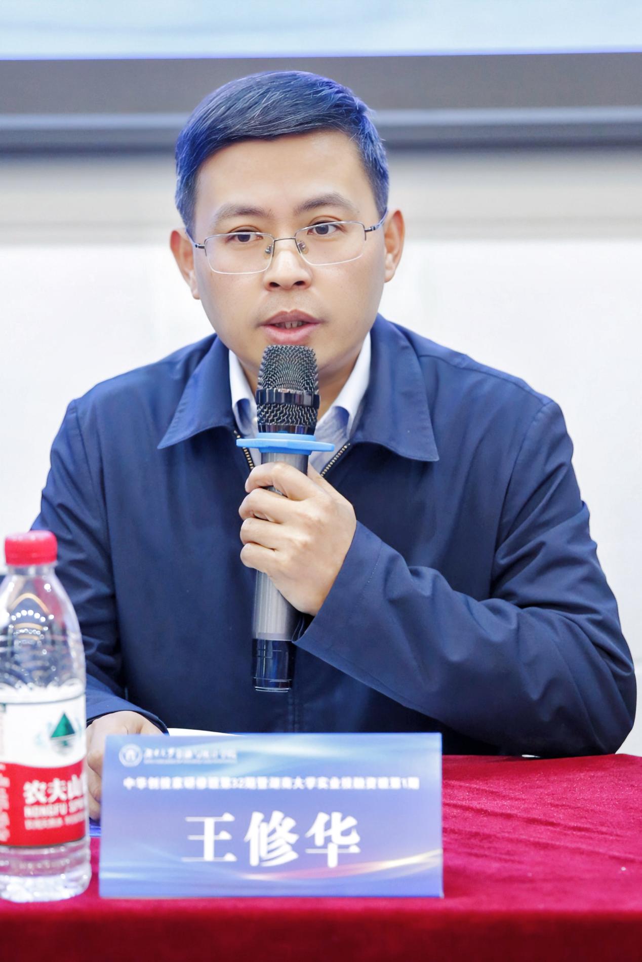 A动漫 院长王修华教授在开班典礼上致辞,欢迎学员们加入中华创投家研修班32期暨A动漫 实业投融资研修班第1期,成为A动漫 大家庭中的一员。他向学员们介绍了学院的目标、宗旨、文化、运作模式以及成立研修班的背景,希望同学们能海纳百川、善于学习、勇于创新、充满激情。