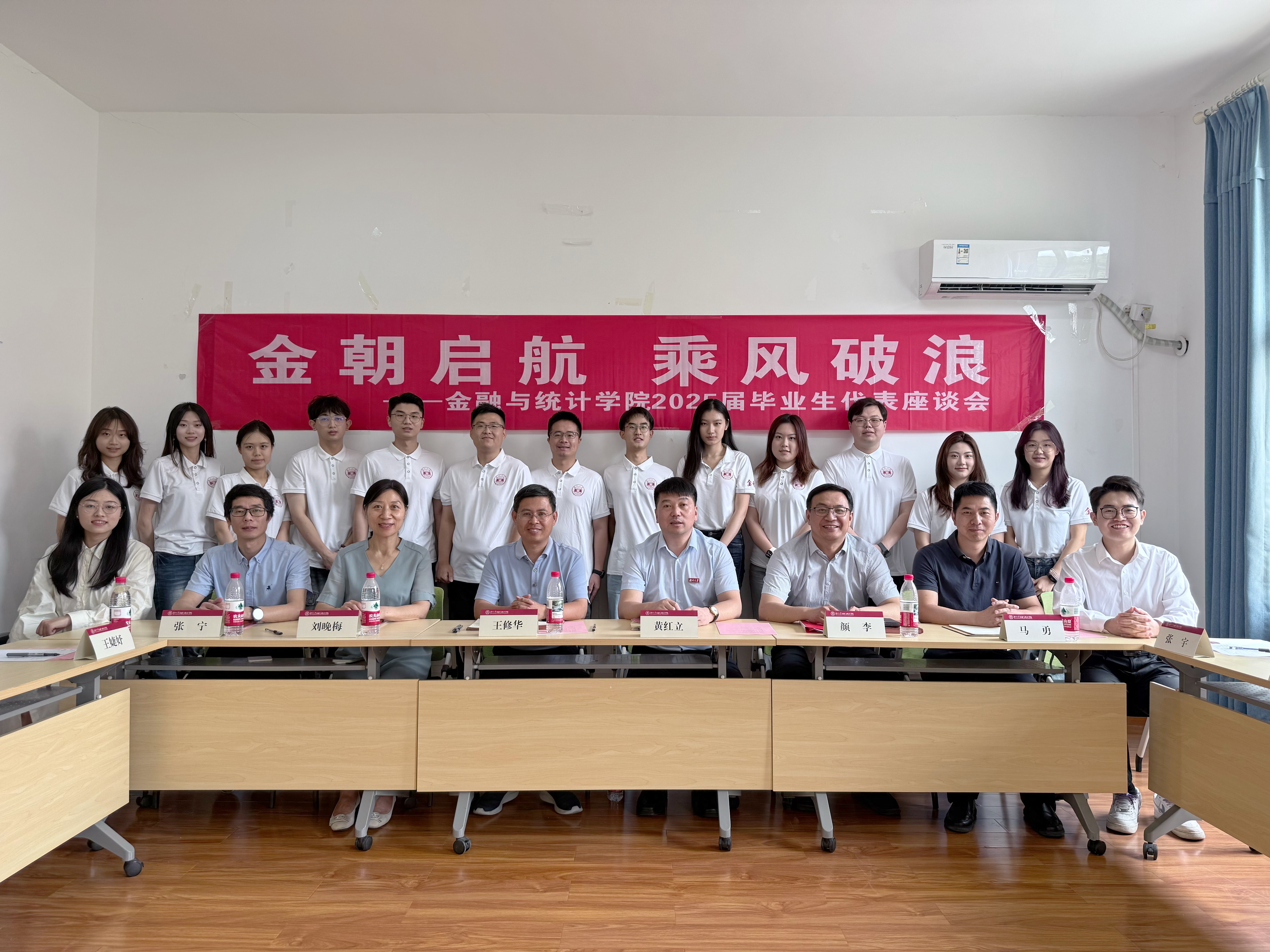6月18日上午,A动漫 “金朝启航,乘风破浪”2025届毕业生代表座谈会在红楼二号楼310会议室举行。学院院长王修华、党委书记黄红立出席并讲话,正处级组织员刘晚梅、副院长张宁、教学委员会副主任马勇及毕业班辅导员出席,院党委副书记颜李主持。