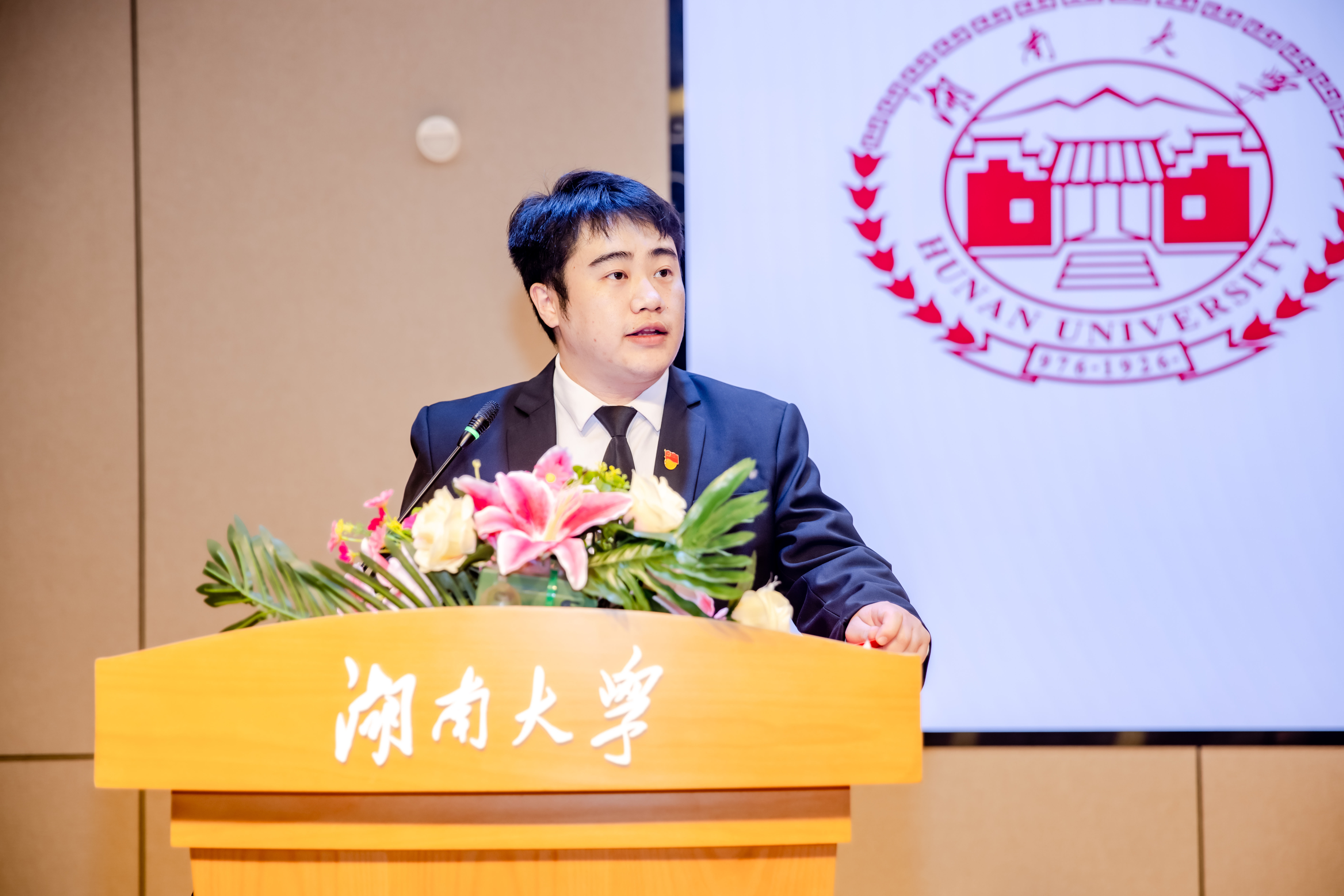 2011级金融专业校友、湖南微猴科技创始人刘叶焕以创业历程诠释追梦精神,分享4次失败后创办“微猴科技”的坚韧,并捐设奖学金激励学子。他寄语湖大学子立大志、勇突破,用向上力量书写未来。