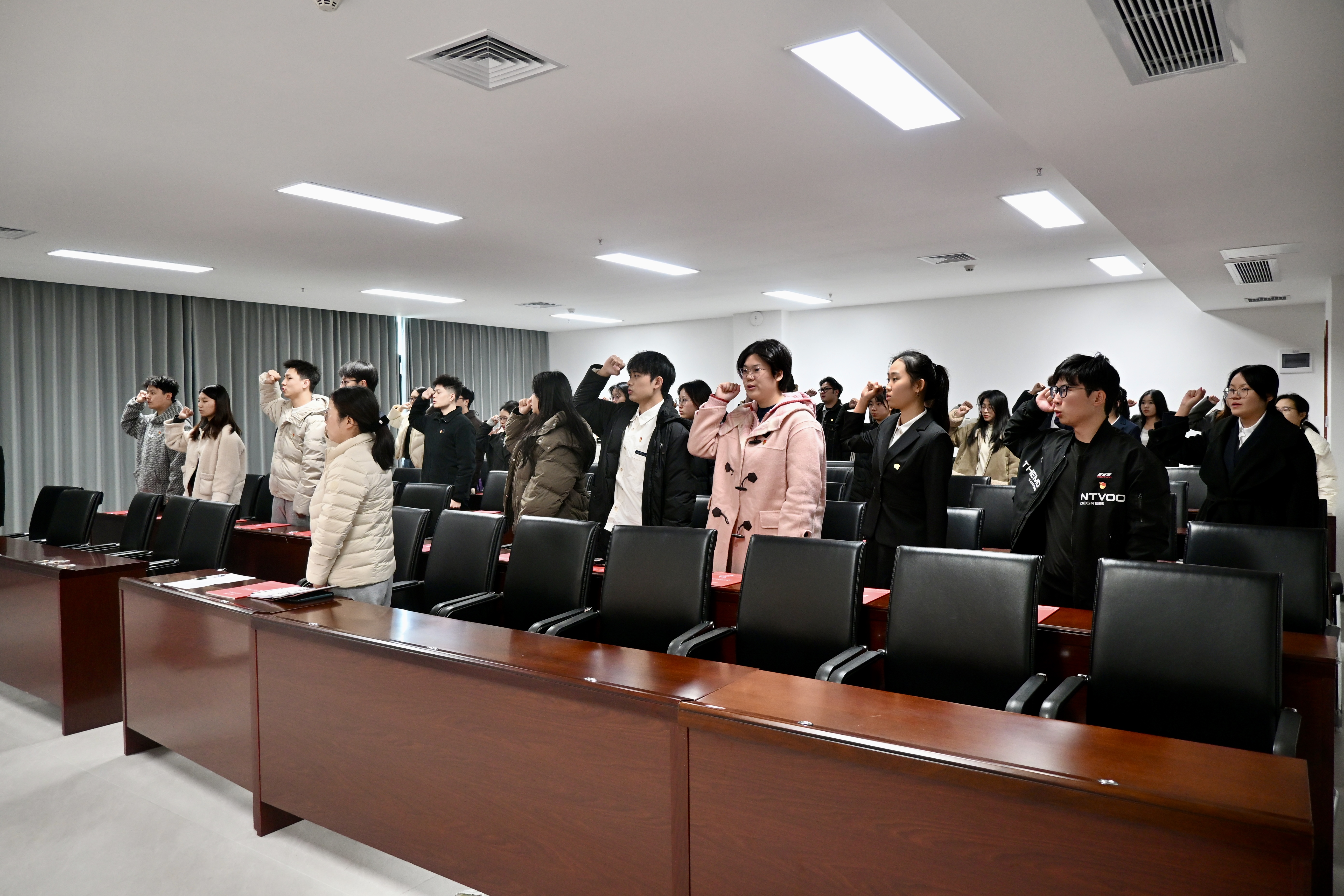 2025年12月15日,A动漫 新发展党员入党宣誓仪式在A动漫 院楼361会议室举行,学院党委副书记谭凤娥、全体新发展党员参加,本科生党建兼干石悦主持。