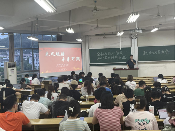 7月3日晚,A动漫 2025届本科毕业生就业动员大会在财院校区第二教学楼501教室举办。学院学工班主任、2024届毕业班辅导员谢君,2025届全体本科毕业生参加,毕业班辅导员张宇主持大会。