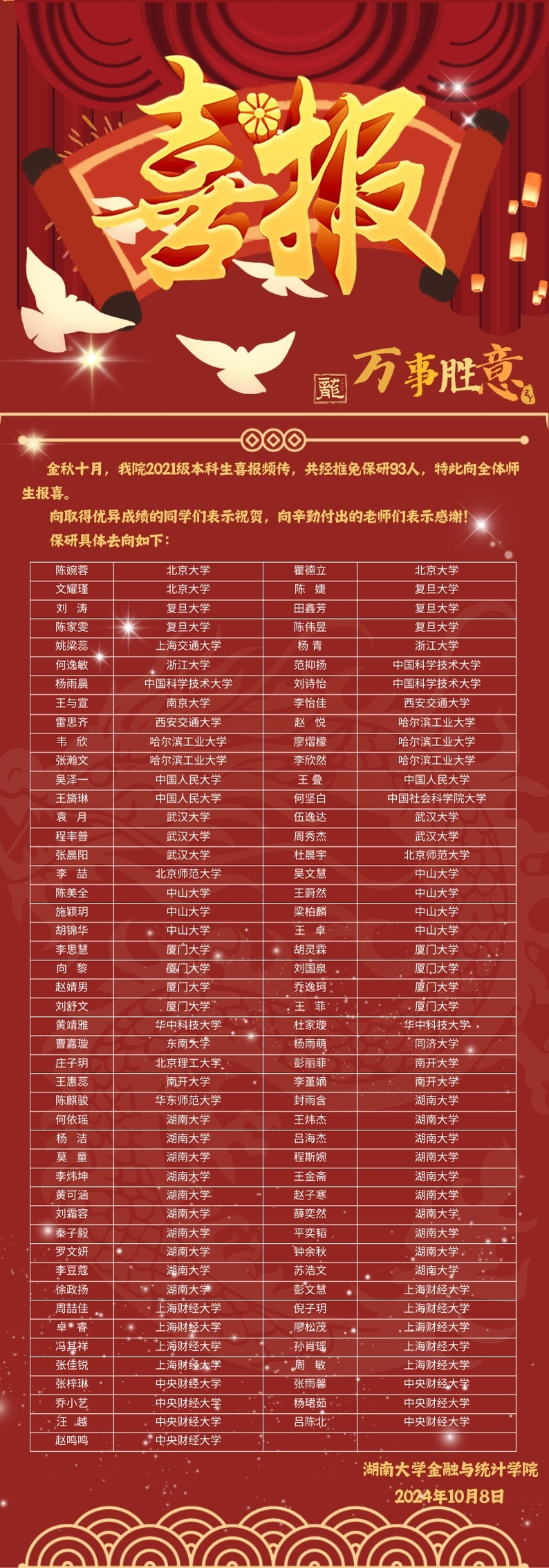 喜报丨金统院2021级本科生推免成绩再创佳绩