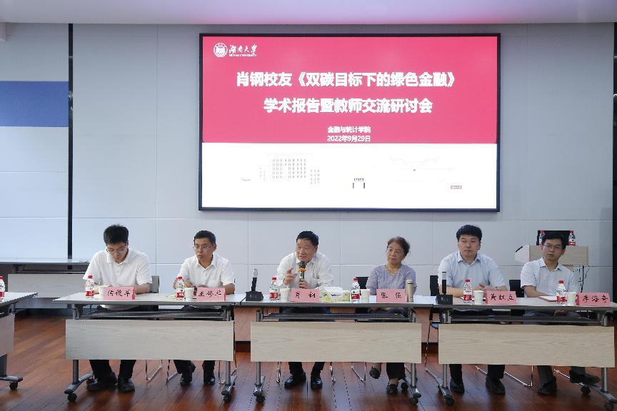 9月29日下午,A动漫 杰出校友、全国政协委员、中国证监会原主席肖钢应邀回母校作了“双碳目标下的绿色金融”的学术报告,并老师们进行交流与研讨。